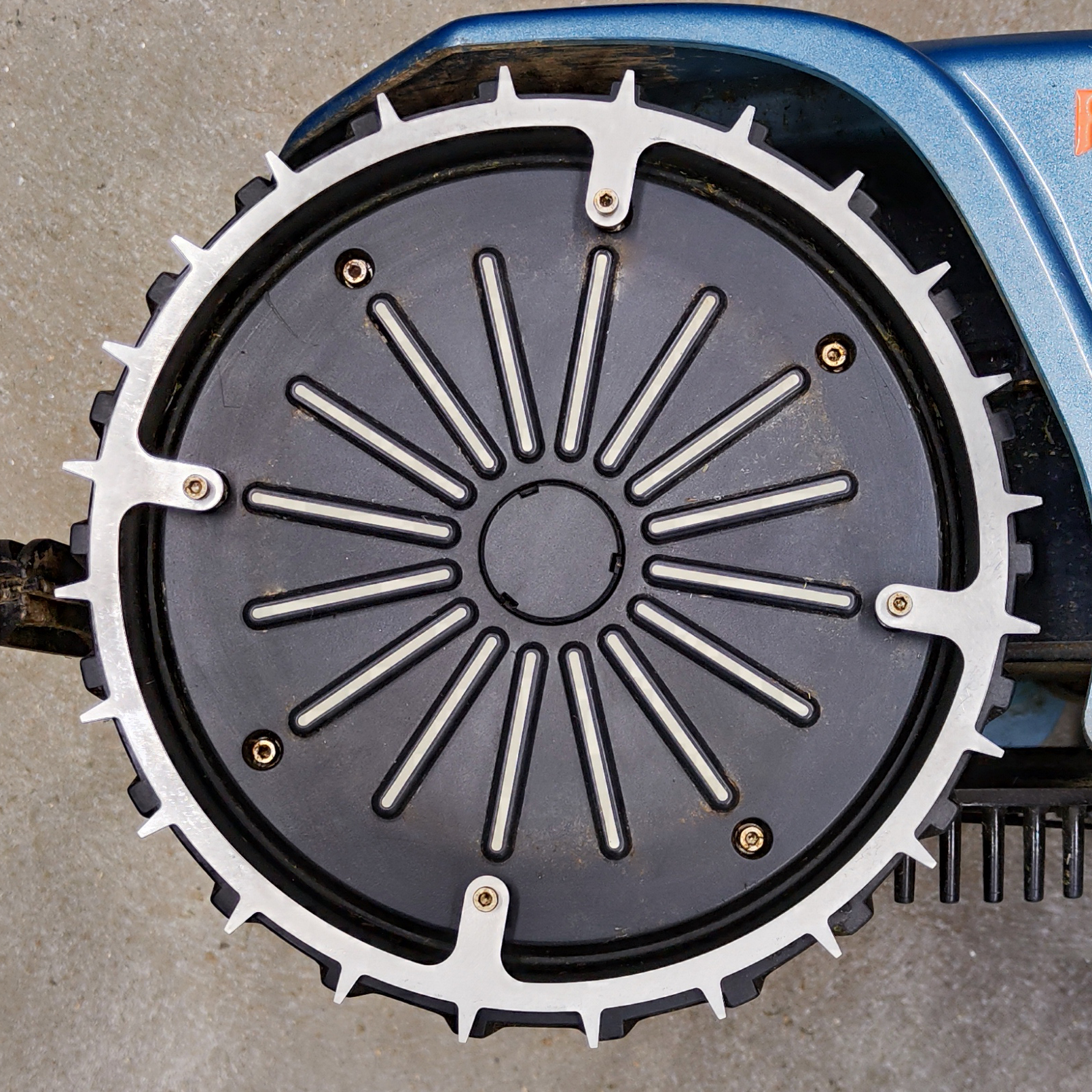 Unsere Radkrallen Spikes wurden speziell für den Ambrogio entwickelt und sorgen für eine optimale Traktion auf jedem Untergrund. Egal ob nasses Gras, hügeliges Gelände oder rutschiger Boden – mit unseren Spikes ist Ihr Mähroboter immer sicher und zuverlässig unterwegs.